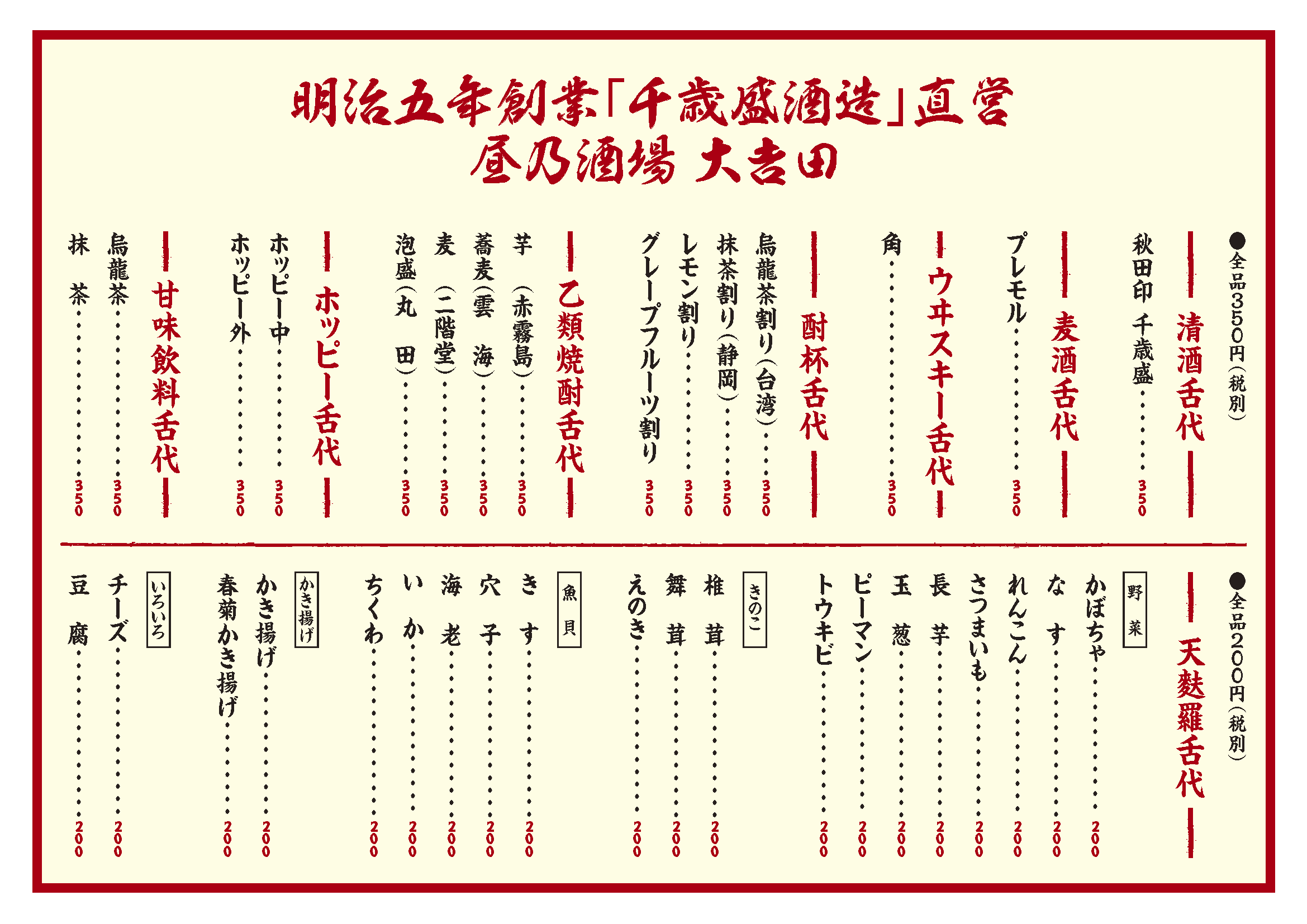 昼乃飲物類舌代
