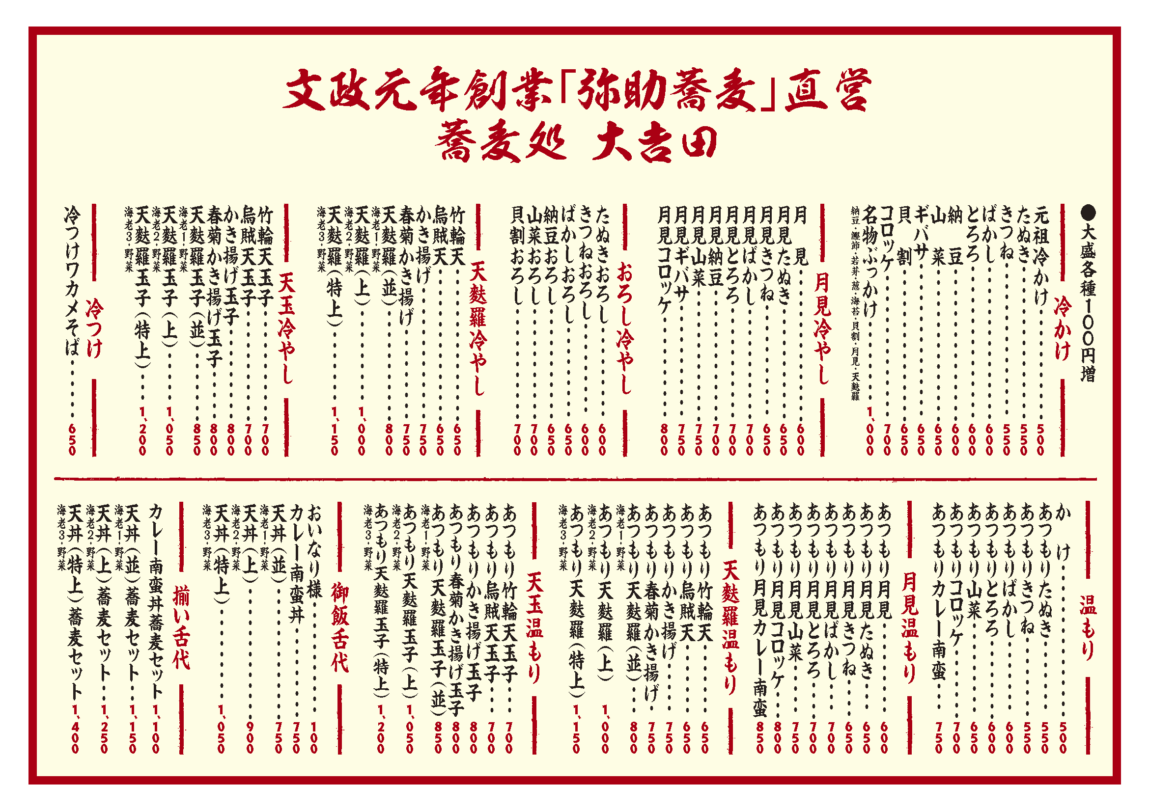 大盛りは各種100円増。