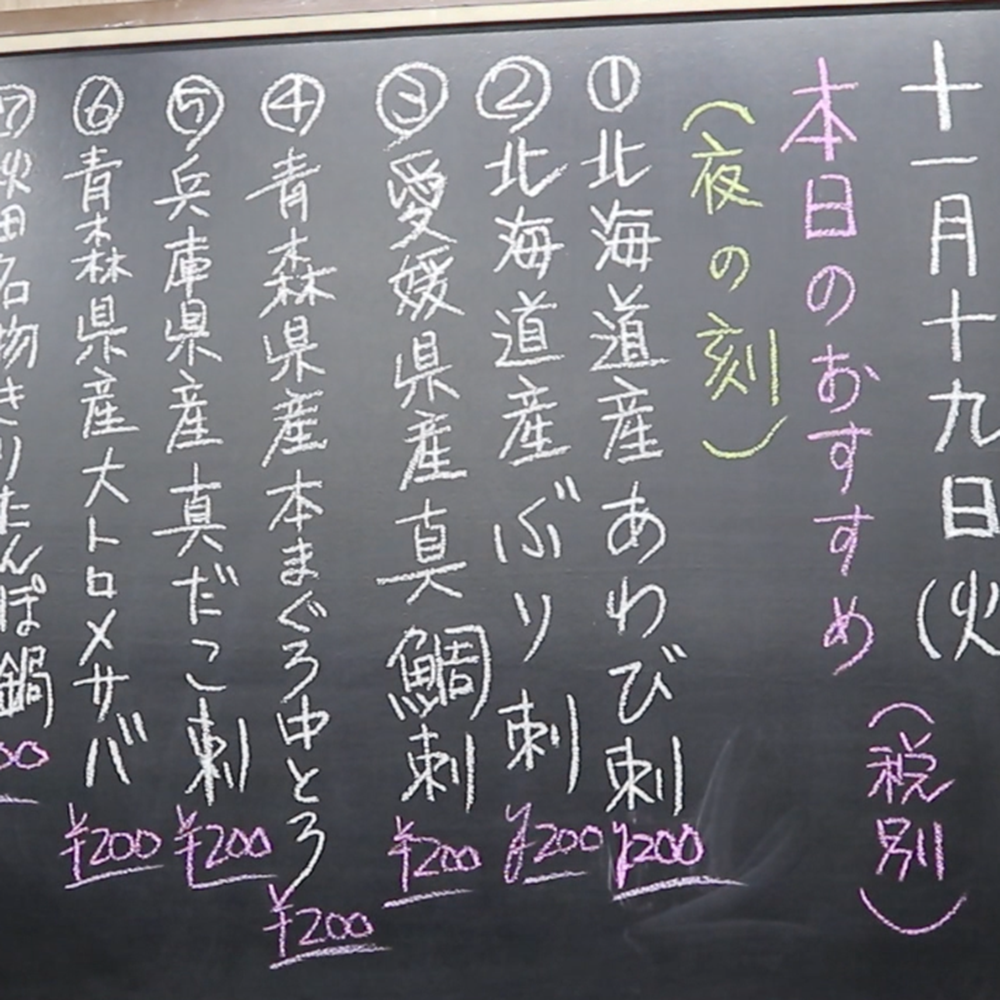 本日のおすすめはお店の黒板にて